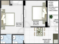 2 BHK + Study + Living + Dining